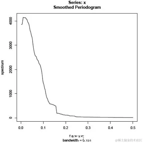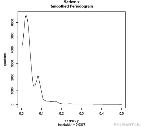 例如,假设观察到的序列被命名为x,我们希望使用具有m = 4的Daniell内核来平滑周期图。命令是