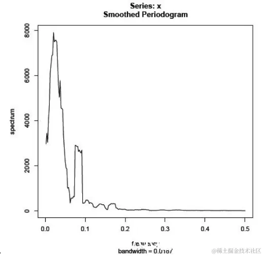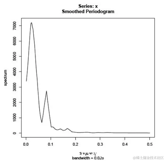 带宽应该足以平滑我们的估计,但是如果我们使用太大的带宽,我们将过多地平滑周期图并且错过看到重要的峰值。在实践中,通常需要一些实验来找到提供合适平滑的带宽。