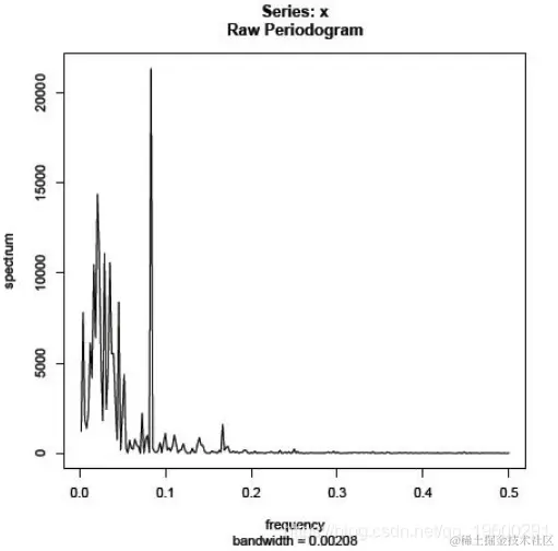 任何时间序列都可以表示为在 谐波 频率上振荡的余弦和正弦波之和= j / n,其中j = 1,2,...,n / 2。周期图给出了关于各种频率的相对强度的信息,用于解释时间序列的变化。