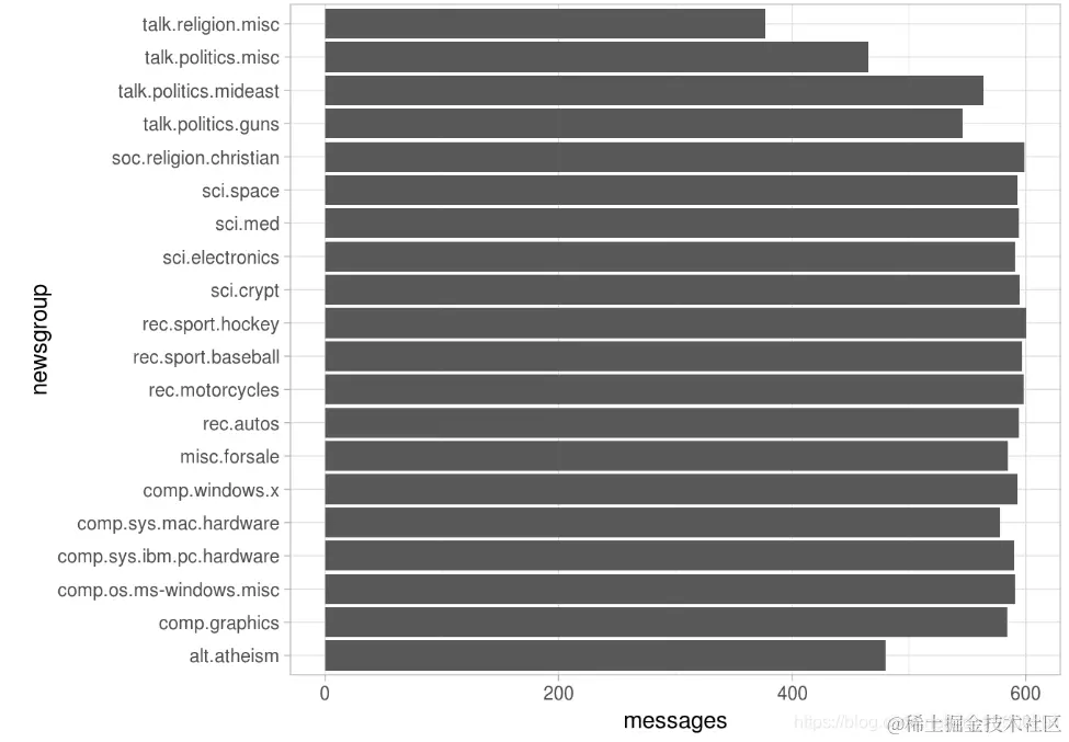请注意该newsgroup列描述了每条消息来自哪20个新闻组,以及id列,用于标识该新闻组中的消息。