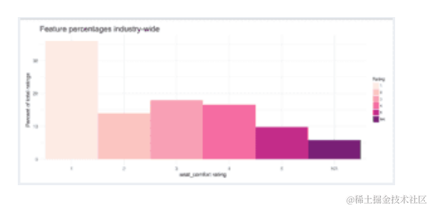 分析了包含每个变量的评论比例。输入缺失值不可避免地会导致结果偏差,但是消除这些值会为我们带来潜在的宝贵信息。在这种情况下,我相信各方面的失踪倾向于属于“不随意丢失”的范畴,这意味着失踪的原因实际上与所讨论的变量的价值有关; 特别是,我认为,大量缺失的领域对于客户而言可能不那么重要,而缺少缺失的领域则更为重要。为了分析这一点,我绘制了包含每个变量的评论比例: