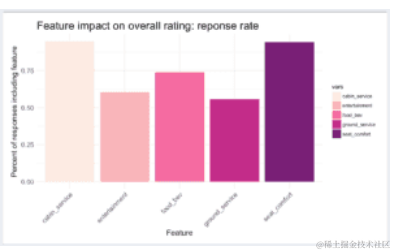 探索了机舱服务,娱乐,食品和饮料,地面服务和座椅舒适性五个变量中的每一个,并且通过所有这些导致以下观察: