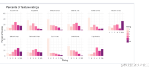 由此我们看到,机舱服务和座椅舒适度几乎包含在每个评论中,而地面服务仅包含在约55%的评论中。