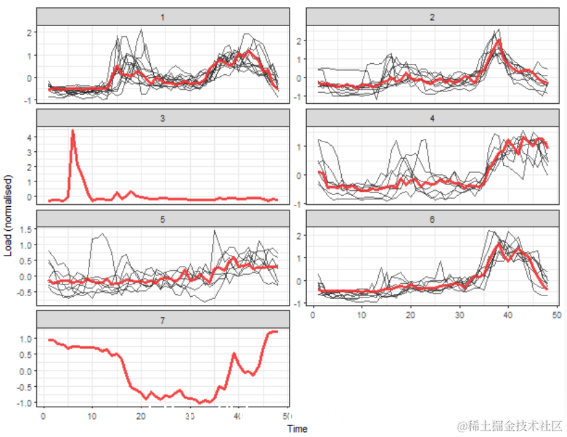 通过对用电负荷的消费者进行聚类,我们可以提取典型的负荷曲线,提高后续用电量预测的准确性,检测异常或监控整个智能电网(Laurinec等人(2016),Laurinec和Lucká( 2016))。第一个用例通过K-medoids聚类方法提取典型的电力负荷曲线。