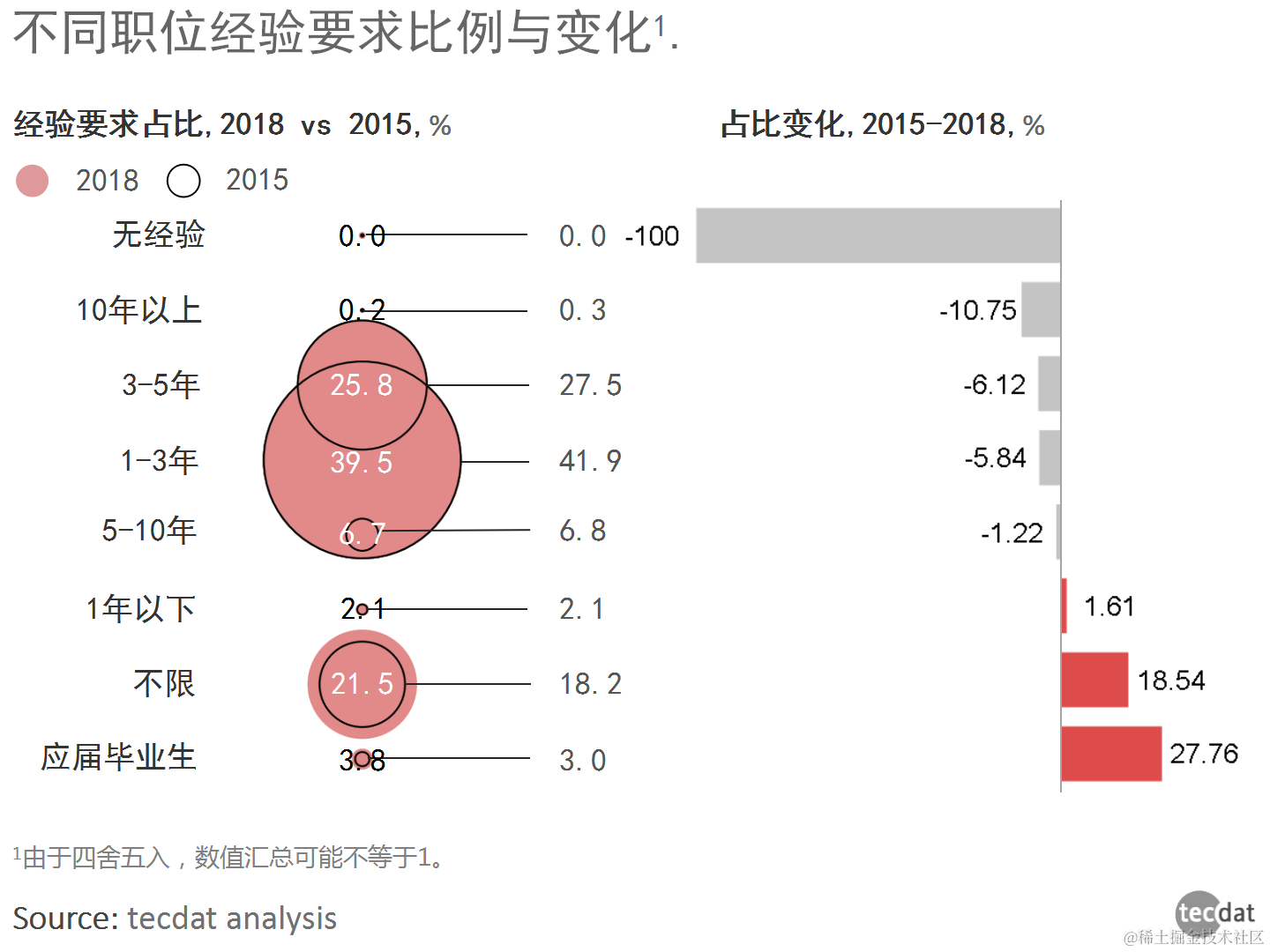 为了比较职位的经验要求变化,我们将15年到18年的数据及其变化进行分析。