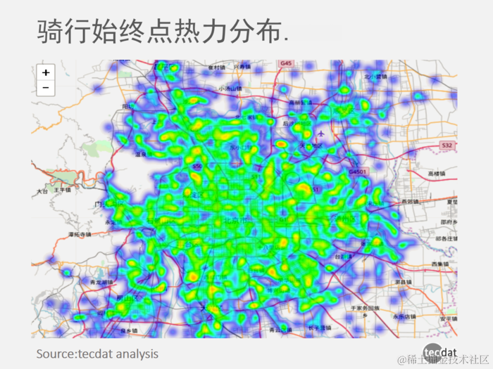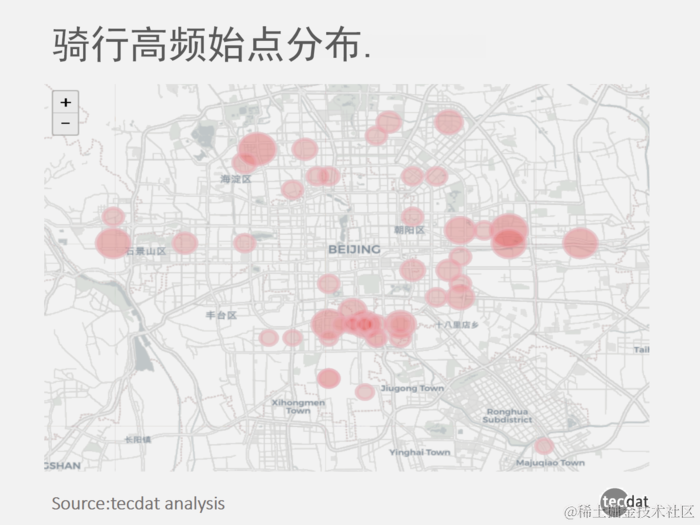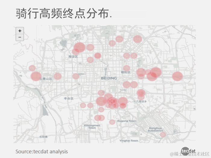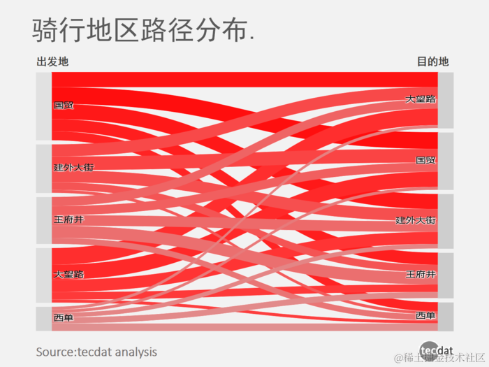 从出行的始终点和路径来看单车出行目的地多为商圈,行车频率一定程度上反映了某个地区的商业化程度。