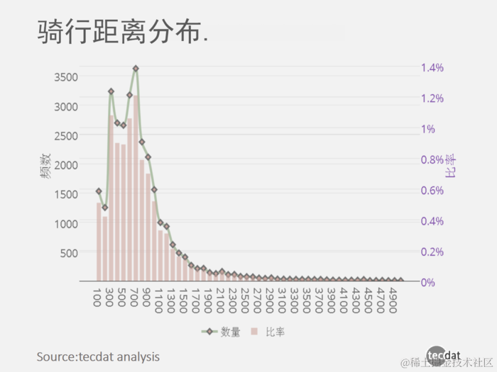 从骑行距离的分布情况来看,我们发现主要集中在 200-1500 米,解决了将近80%的用户“两公里范围内出行难”的需求,有短距离出行和短途接驳的作用,大大提高了出行效率,也有效地补充了长途出行。