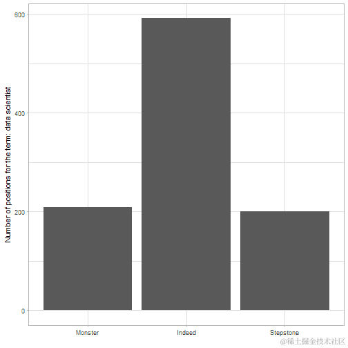 我从网站上挖掘了可用的职位空缺数量:Monster,Stepstone和Indeed正在搜索术语“数据科学家”。