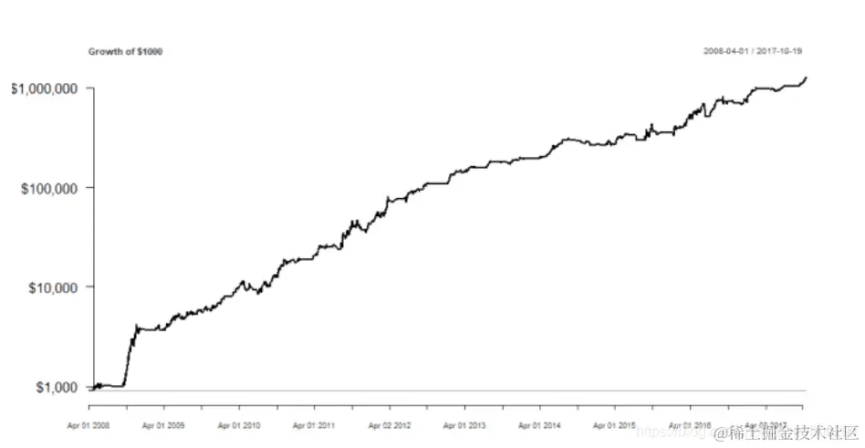 也就是说,如果从那以后能够交易这个策略的话,2008年的1000美元将会变成大约100万美元。