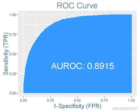上述模型的ROC曲线面积为89%,相当不错。