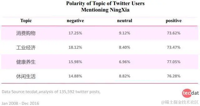 通过2016年推特的关键词,我们发现负面的议题包括:驴友评论宁夏干燥的天气、宁夏部分地区牺牲环境换发展、以及导游强迫购物现象。