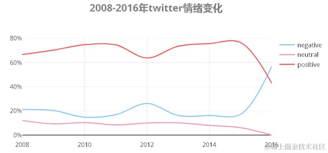 从变化的情况来看,2016年的推文积极正面的评价比例最低,为42%,消极负面评价的比例为58%,是历年来最高的。