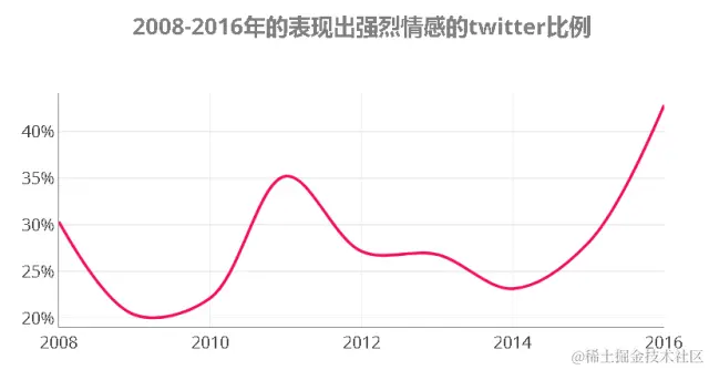 历时来看,随着时间的推移,热门推文表现出强烈情感的比例越来越多。在2008年,只有30.3%表达出了强烈的情感,而2016年,这个比例已经提升到42.8%。这表明,就宁夏地区议题而言,推特用户越来越倾向于表达出强烈的情感。
