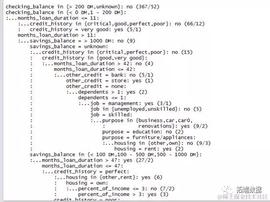 在决策树中我们不难发现,为什么一个申请者的信用记录非常优秀,却被判成很有可能违约,而那些支票余额未知的申请者却不太可能违约呢?这些决策看似没有逻辑意义,但其实它们可能反映了数据中的一个真实模式,或者它们可能是统计中的异常值。