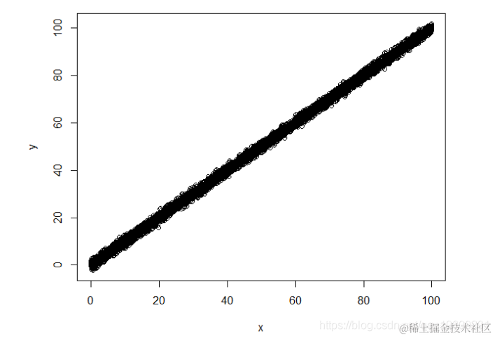 y < - x + rnorm(n)
