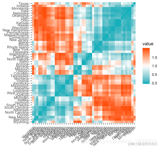 get_dist():用于计算数据矩阵的行之间的距离矩阵。与标准dist()功能相比,它支持基于相关的距离测量,包括“皮尔逊”,“肯德尔”和“斯皮尔曼”方法。fviz_dist():用于可视化距离矩阵