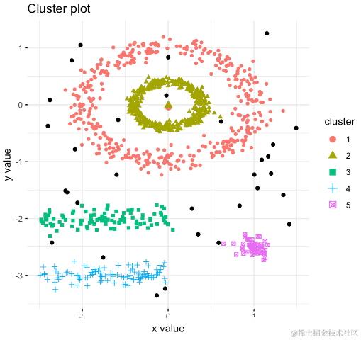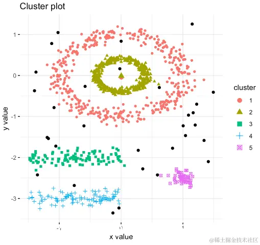 DBSCAN是Ester等人引入的聚类方法。(1996)。它可以从包含噪声和异常值的数据中找出不同形状和大小的簇(Ester等,1996)。基于密度的聚类方法背后的基本思想源于人类直观的聚类方法。
