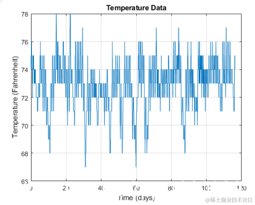 冬季办公大楼中的一组温度测量值。每30分钟进行一次测量,持续约16.5周。