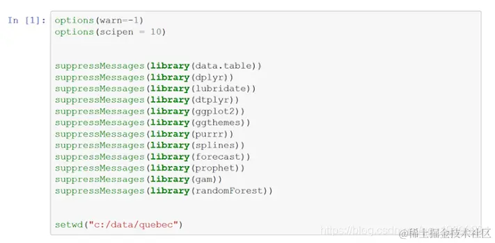 首先,设置一些选项,加载一些库,并更改工作目录。