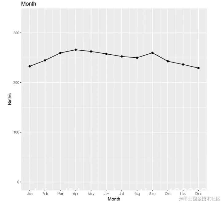 第三个模型基于月创建一个因子来处理每月的季节。这种季节性似乎不像一周中的一天那么强烈。
