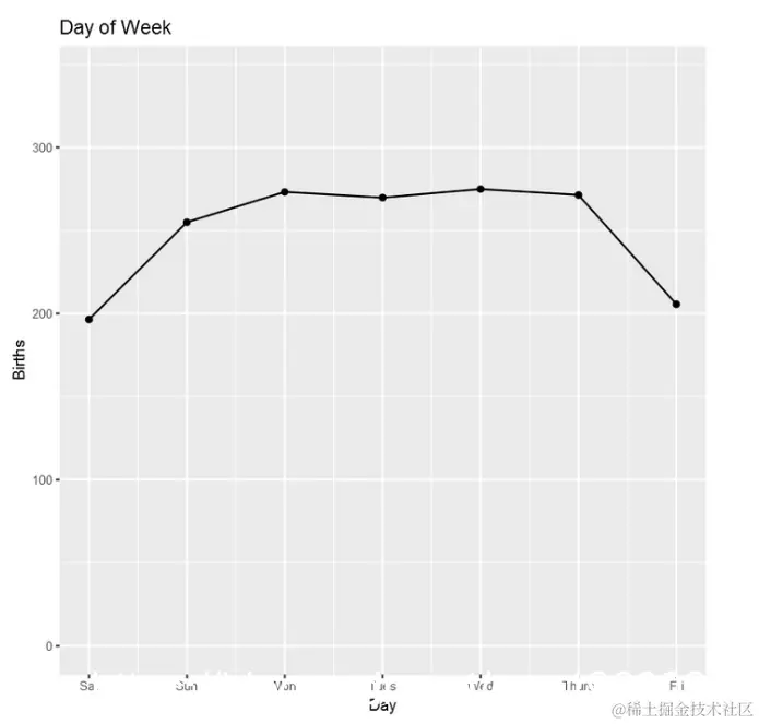 接下来运行一个星期几的每日出生率模型,以捕获一周内的季节性。在性能指标上,该模型似乎比第一个模型好,这表明一周中每天都有重要的季节性。