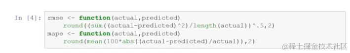 定义两个小函数来计算 均方根误差(rmse)和平均绝对百分比误差(mape),以评估预测模型的性能。越低越好。