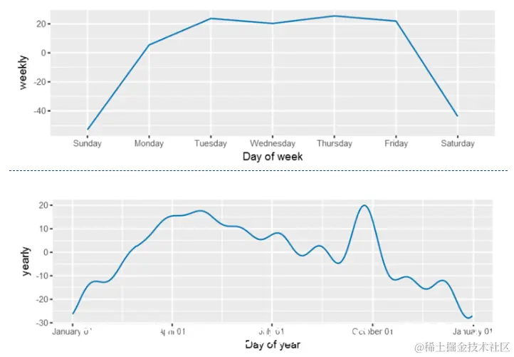 接下来,绘制 模型的组成部分,看起来与上图非常相似- 使用的是一年中的日期而不是月份。
