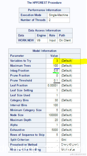HPFOREST仅使用在任何观察值下均没有缺失记录的有效变量。但是,我们还可以看到,在研究样本的213个国家中,有213个被利用。