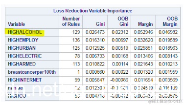 - 拟合统计告诉我们,OOB数据的偏差较小,因此,数据通过OOB Gini度量进行排序
