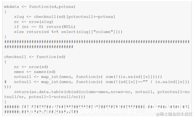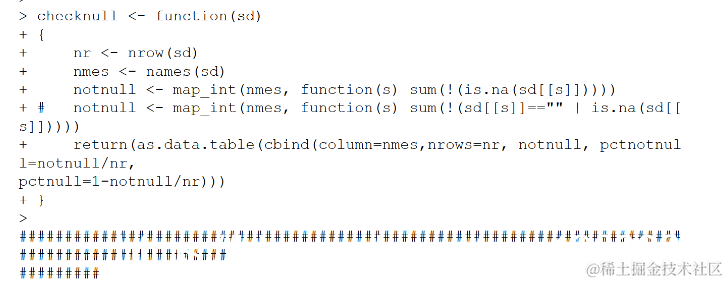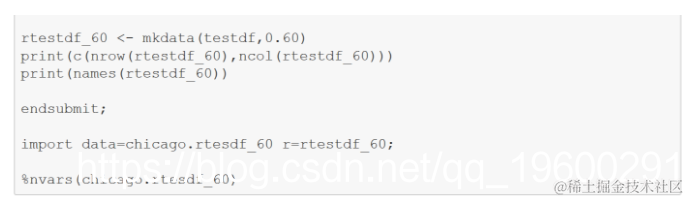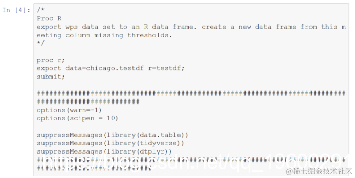 将测试SAS数据集导出到R数据帧,确定哪些列为60%或更高notnull,将这些列组装到新数据帧中,然后将该数据帧导入SAS。注意注释的语句除了空值外还标识空白。264列中只有33列达到60%阈值。该单元的执行非常迅速。