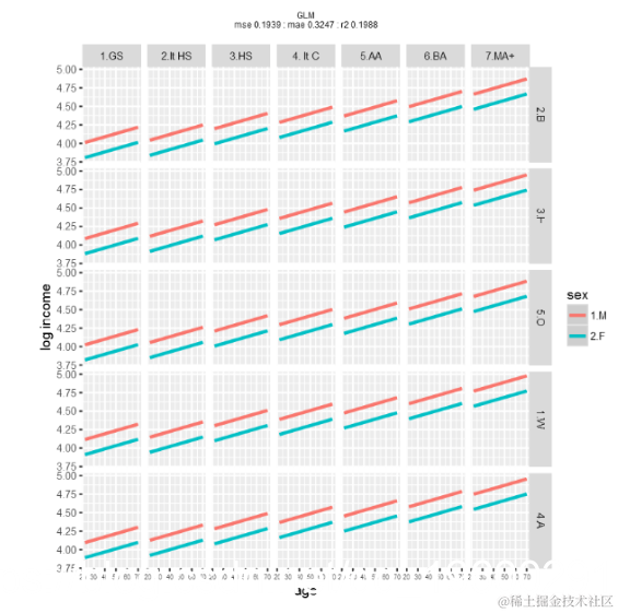 运行 线性模型(glm),并使用训练数据对登录年龄,性别,种族和教育程度进行回归。