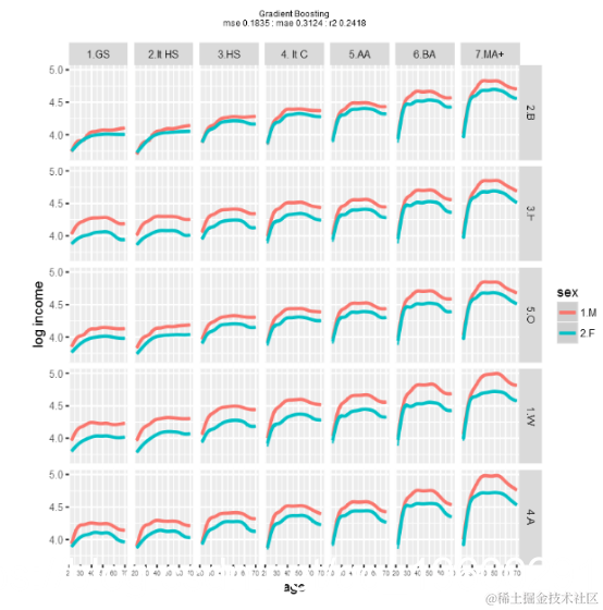 接下来,进行梯度增强,更多是非参数的,重采样的黑匣子模型。执行速度慢得多,反映出计算量很大。请