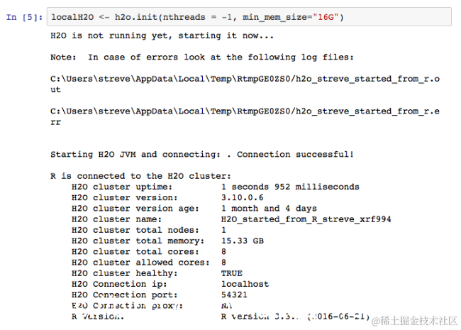 启动H2O服务器,分配16G RAM并使用所有8个内核。