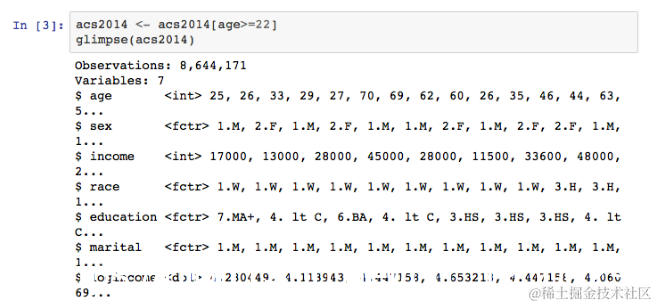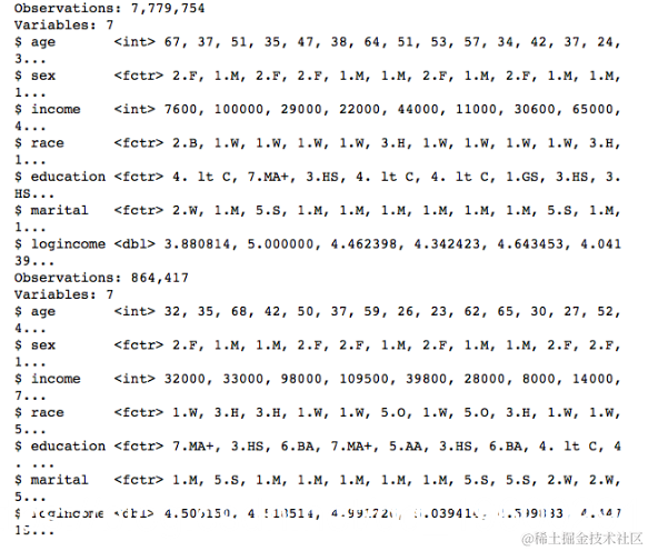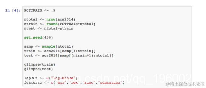 下一步是将Acs2014划分为R中的训练和测试数据表。对于我们的分析,因变量是logincome,而功能包括年龄,性别,种族和教育程度。