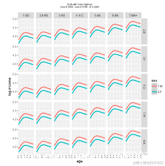 再次运行glm模型,这次使用年龄的三次样条来显示年龄和登录名之间的曲线关系。
