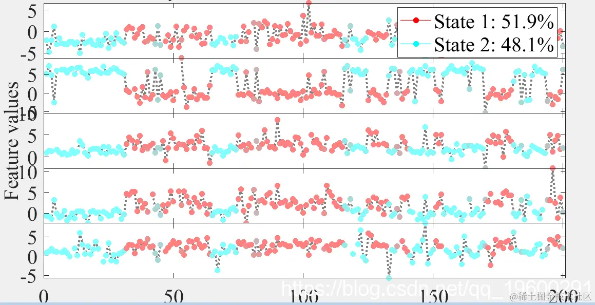 本文从未知的BRHMM生成一组数据序列 参数,并仅从这些数据中估算出 生成它们的模型。 结果绘制为 时间序列