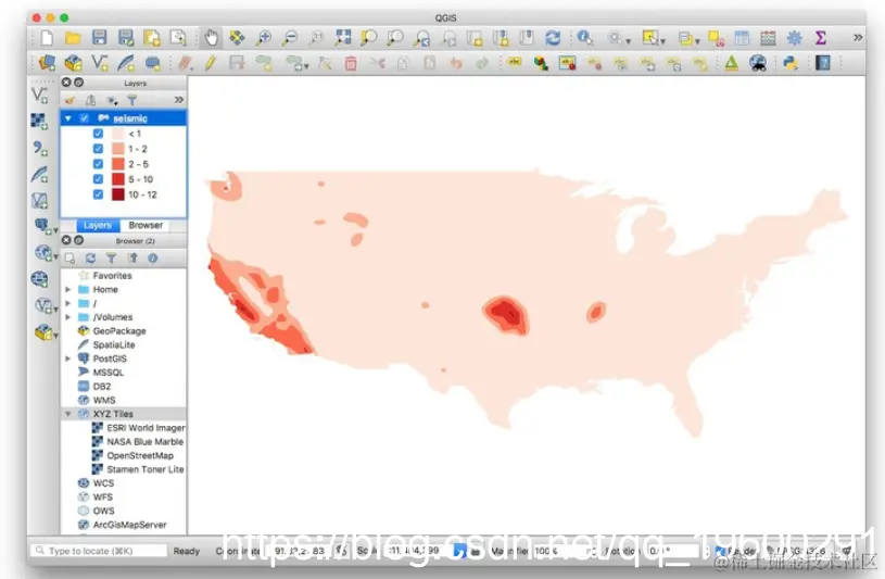 seismicShapefile,其中包含来自美国地质调查局的 2017年美国大陆遭受破坏性地震风险的数据。 -