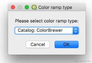 现在,单击Color ramp下拉菜单,选择Create New Color Ramp, and at the next dialog box select目录:ColorBrewer`: