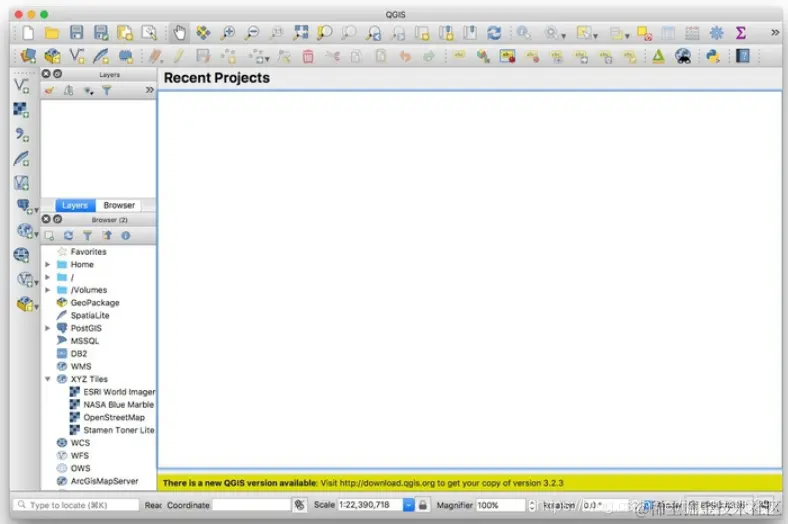 启动QGIS, 应该看到类似以下的屏幕: