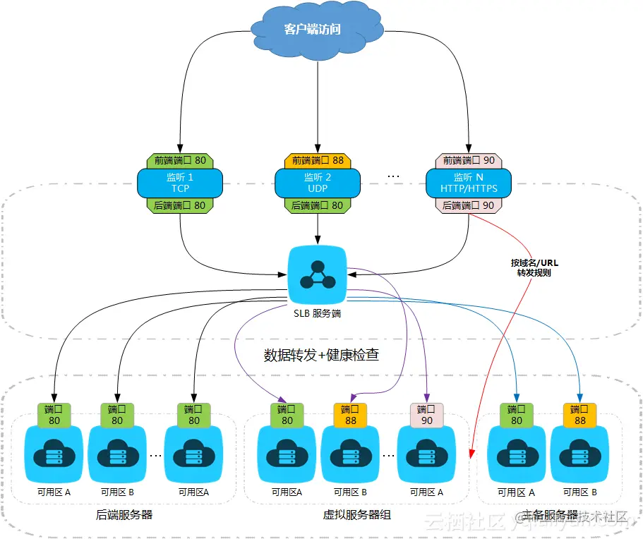 - 按业务逻辑创建不同的虚拟服务器组,然后创建相应的监听与之对应。