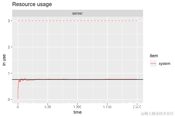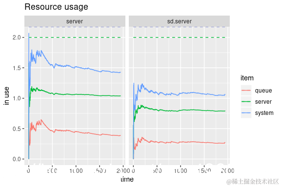 在许多实际的排队方案中,服务器的速度取决于系统的状态。在这里,我们考虑一个多服务器资源,该资源能够在到达位置之间平均分配处理能力。这意味着,例如,如果capacity=2服务器中有一个服务器到达,则服务器的服务速度将提高一倍。