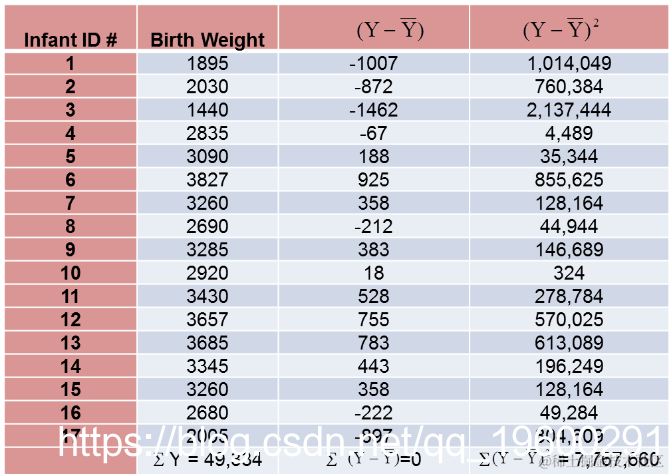 正如我们对孕龄所做的那样计算出生体重的方差,如下表所示。