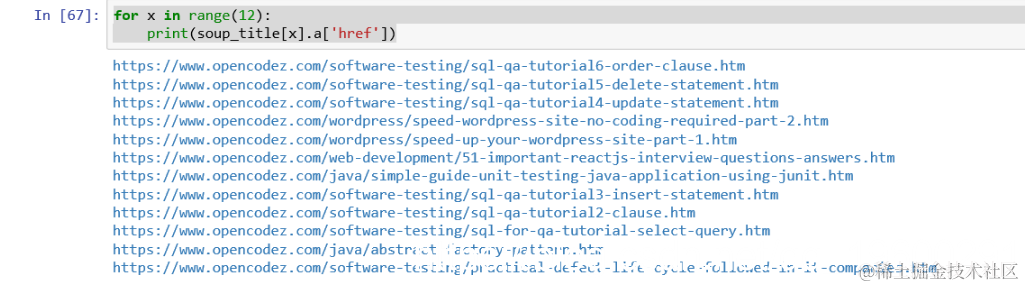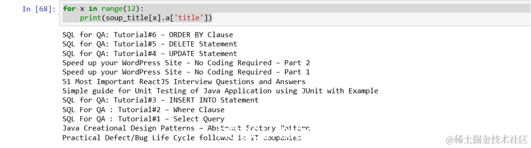 将列出12个值的列表。从这些文件中,我们将使用以下命令提取所有已发布文章的标题和hrefs。