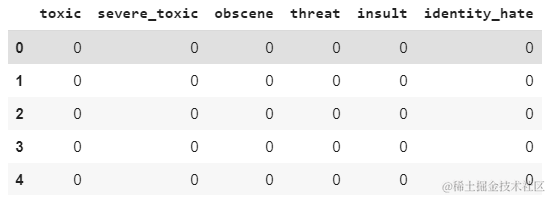该y变量包含6个标签的组合输出。但是,我们要为每个标签创建单独的输出层。我们将创建6个变量,这些变量存储来自训练数据的各个标签,还有6个变量,分别存储测试数据的各个标签值。