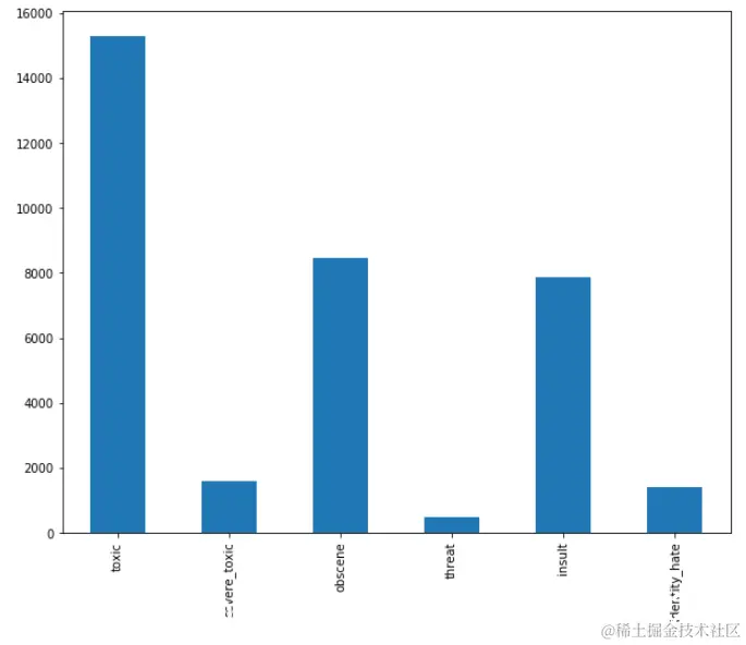 您可以看到,“有毒”评论的出现频率最高,其次是 “侮辱”。