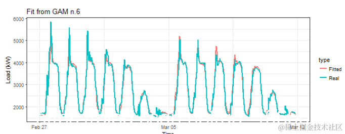 最低值在gam_6模型中。让我们再次查看拟合值。
