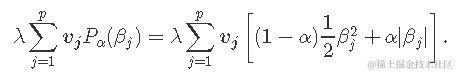 在覆盖整个范围的λ值网格上。这里l(y,η)是观察i的负对数似然贡献;例如对于高斯分布是。 弹性网络惩罚由α控制,LASSO(α= 1,默认),Ridge(α= 0)。调整参数λ控制惩罚的总强度。