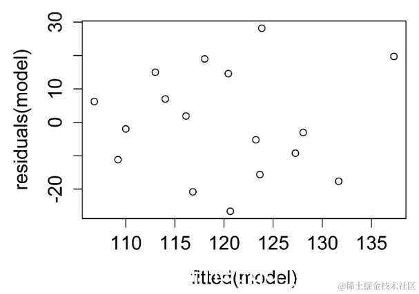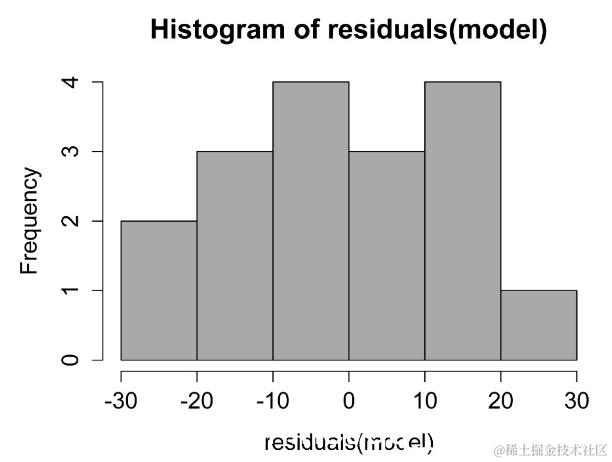 线性模型中残差的直方图。这些残差的分布应近似正态。