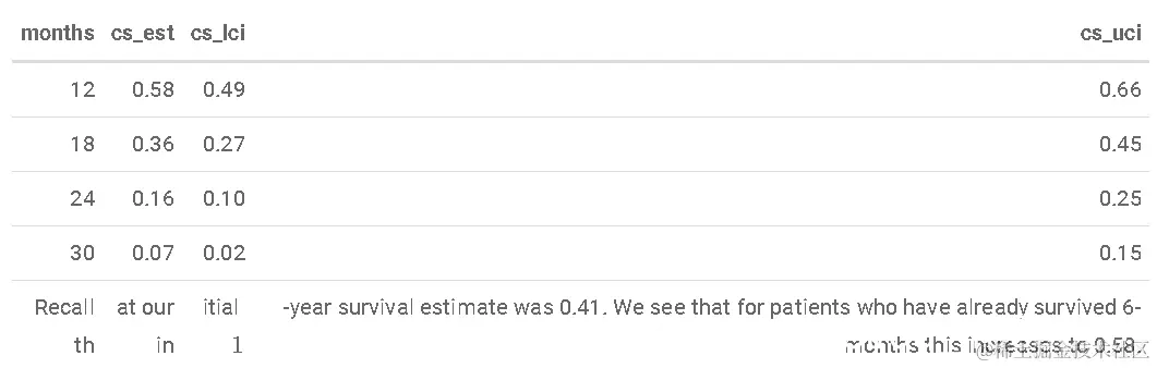 有时,在已经存活了一段时间的患者中产生存活率估计值很有意义。