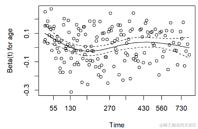 - 这是通过证明协变量和log(time)之间的交互作用来完成的